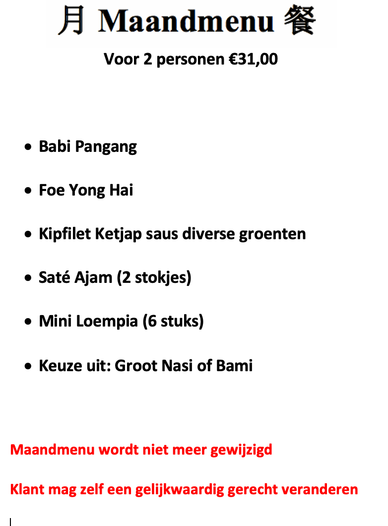 Van dinsdag t/m zondag kunt u genieten van ons warme buffet. Onbeperkt eten van het warme buffet is nu voor maar liefst